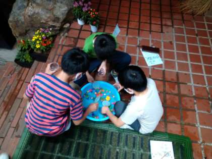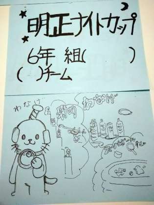 雨が降っているので、キャンプファイヤーは延期し、明日の予定だった明正カップを行いました。生活班ごとに順番にチャレンジしました。