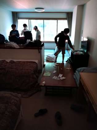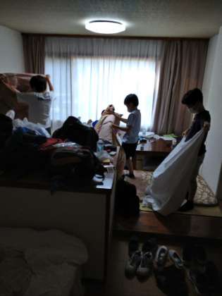 朝食を終え、部屋の片付けと出発準備です。協力してがんばっています。