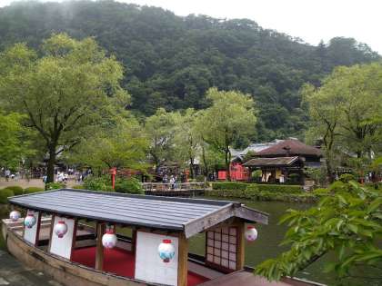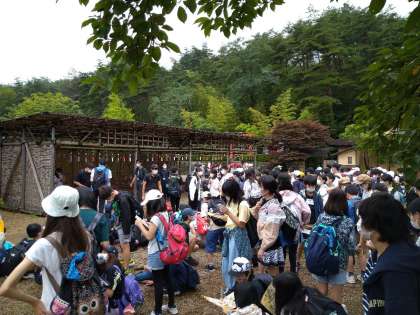 日光江戸村に到着しました。泊まっていたいろは坂の上は快晴だったのですが、いろは坂を下りると曇りです。雨は降っていません。これから行動班で村巡りです。