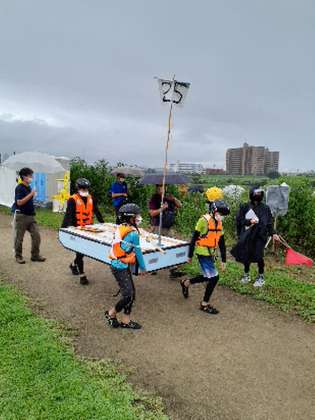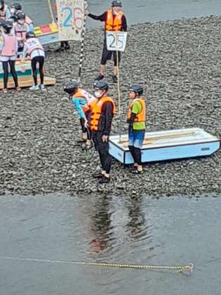 これから、多摩川を下り、約1.2キロ先のゴールを目指します。
