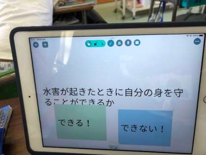 4年生の社会科の学習は「水害からくらしを守る」という単元に入りました。今日はその第一時でした。過去の水害の映像や写真資料等から、気付いたことや疑問点を考え、ロイロノートに提出しました。昔も、今も、台風等による水害に悩まされてきたことを知りました。その現実に驚いた児童がたくさんいました。最後に、自分の身を守ることができると思うかについてロイロノートでアンケートを取りました。このアンケート結果を材料の一つとして、単元を通して明らかにしていく学習問題をつくっていきます。