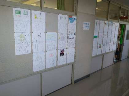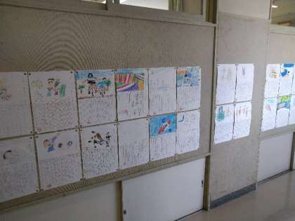 教室の壁面に夏休みの絵日記が掲示されています。「虫を捕まえた。」「家族ででかけた。」「親戚に会えた。」「花火をして楽しかった」など、見ていると、様子が思い浮かんで楽しくなります。夏休みにしかできない経験をたくさんできたようです。