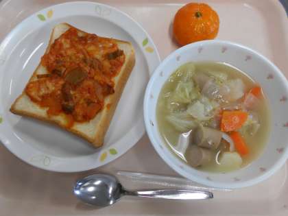 ピザトースト ポトフ 冷凍みかん 牛乳