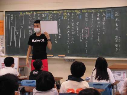 4年生は「忘れもの」の詩について学びました。夏が終わってしまった淋しさと、秋を迎える新しい気持ちをよんでいます。