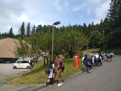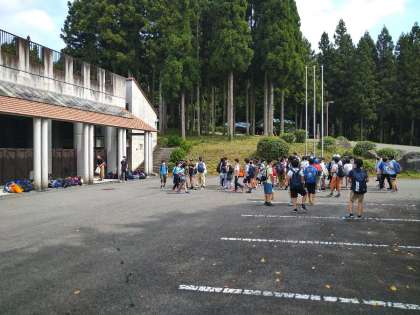 なかのビレジに到着しました。これから開室式です。「空気がおいしい〜」という声が聞こえました。