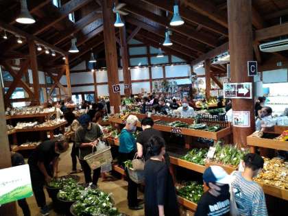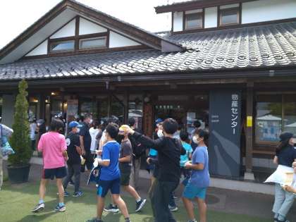 田園プラザに到着しました。みんな真剣な表情でお土産を選んでいます。