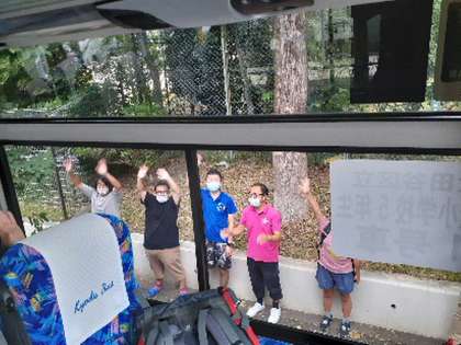 5年生を乗せたバスは8時ちょうどに世田谷を出発しました。たくさんの教員が見送りに来てくれました。気を付けて行ってきます!