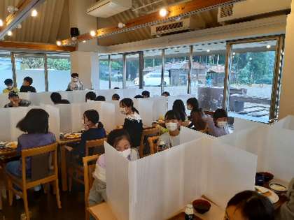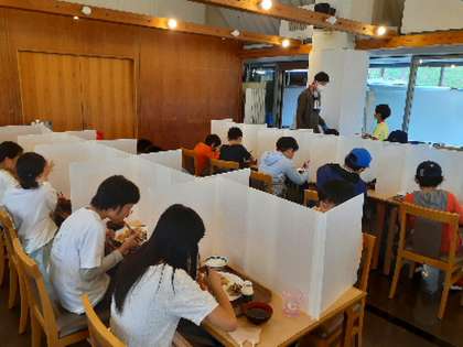 朝食です。しっかり食べて1日の活力をいただきました。飲むヨーグルトが大好評でした。