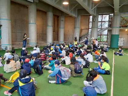 丸太切りの活動の前に閉室式を行いました。ビレジの職員の方に感謝の気持ちを伝えました。また、部屋をどれだけキレイにしたか、教員で審査をした「キレイキレイ選手権」の審査結果を発表しました。女子は1班、男子は7班が優勝しました。