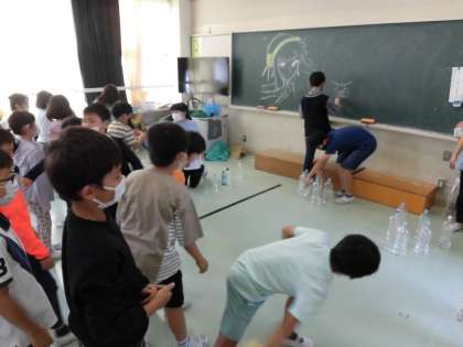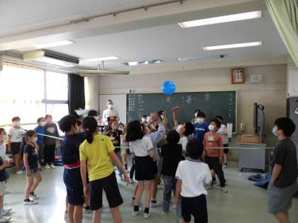 出席をとるとゲームの説明をして、活動が始まりました。ペットボトルを使ったボウリング、わなげ、フルーツバスケット、いす取りゲーム、風船バレーボールと、どの班からもにぎやかな声が聞こえてきました。とまどっている低学年に声をかけて、参加できるように気遣う6年生の姿がすてきでした。