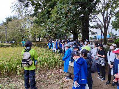 今日は5年生が春に田植えをした稲を刈りに行く日です。天気は今のところ大丈夫です。