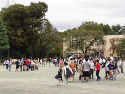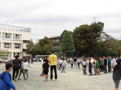 校庭、屋上、体育館いっぱいを使って担任も一緒に取り組む様子は、迫力があります。