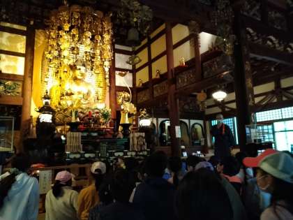 浄真寺を見学しています。浄真寺は約350年前に建てられたお寺です。3年毎に行われる「お面かぶり」が有名です。次に行われるのは2024年だそうです。