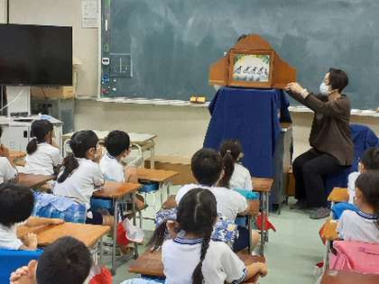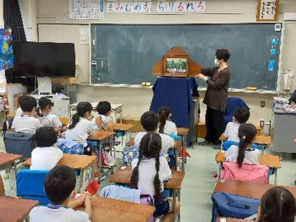 今日も1年生の教室でさくらママによる読み聞かせの時間がありました。紙芝居を食い入るように見てお話を聞いていました。ハッピーエンドのお話に「あーよかった!」と反応し、物語の世界を楽しみました。