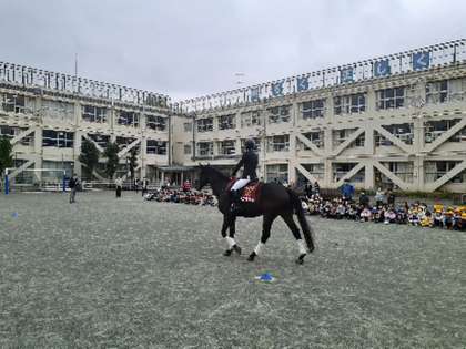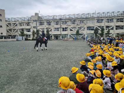 並足、早足、駆け足を右回り、左回りと見せてくれました。優雅な姿に、1.2年生から自然に拍手が起こりました。