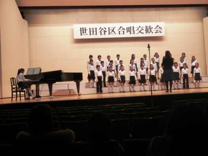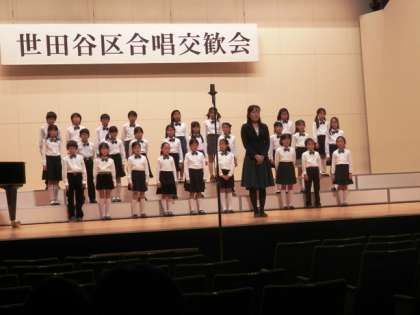 明正小の合唱部の子どもたちも参加しました。年間を通して週2回の朝練習をしています。2学期になってからは、音楽発表会、明正小まつり、成城文化祭と発表会にのぞみ、この日が総まとめです。指揮の石橋先生をしっかりと見て、とても息のあった歌声を聴かせてくれました。