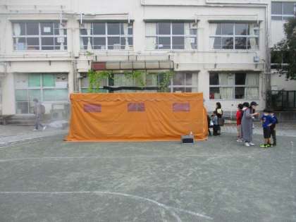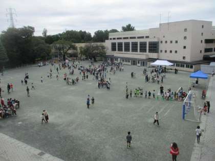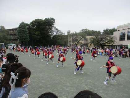 明正ハッピーエイサーズの演舞から明正小まつりが始まりました。たくさんの子どもたちが参加してくれています。煙体験テントや水消火器の体験コーナーもあります。