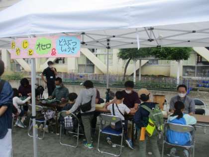 キックターゲット、ストラックアウトです。おやじの会の皆さんによるオセロ・どうぶつしょうぎコーナーも人気です。