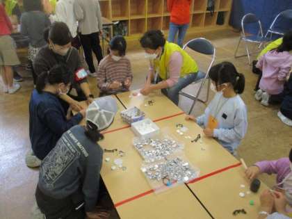 BOP棟では、キラキラペンダント、ボタンヘアゴム、プラバンのコーナーが開かれています。どこも大盛況です。