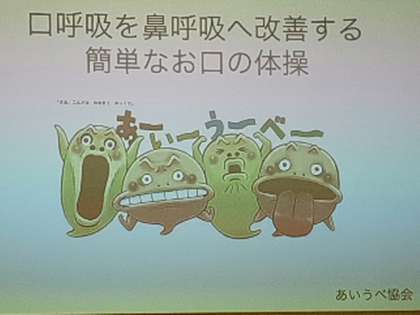 PTA研修委員による、研修会が行われました。マスク生活が続く中、口呼吸をすることが多くなっていると思います。舌の位置を変えたり、表情筋を鍛えたりすることで、鼻呼吸を多くすることができます。鼻呼吸により、唾液の分泌が増え健康になる。顔が引き締まる。肩こりが軽くなることを学びました。そのためのあいうべ体操!画期的な体操です。是非、試してみてください。講師の先生、研修委員の皆様、ありがとうございました。