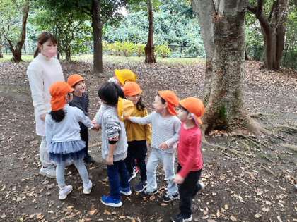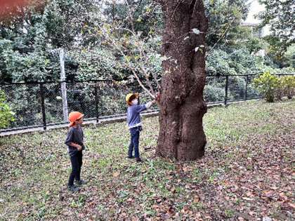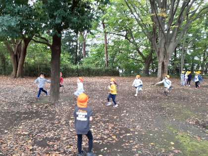 1年生が生活科の秋探しに里山に出掛けると、そこにははあと保育園の年長さんが遊びに来ていました。担任が「保育園の子に声を掛けてみたら?」と促すと、あっという間にいろいろな遊びが始まりました。鬼ごっこ、だるまさんが転んだ、虫探しなどなど。互いが打ち解けるその早さと柔軟さに感心しました。「また遊ぼうね」と約束して最後はお別れしました。今日の1年生の生活科「秋探し」には素晴らしい出会いがありました。これをきっかけに、はあと保育園との交流を深めていきます。