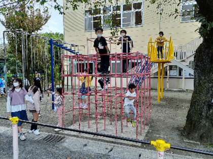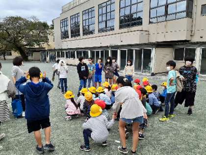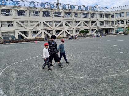保育園児との交流を終えた10分後、1年生は今度は6年生と交流しました。さっきまでは、上手に年長さんをリードしていた1年生。10分後には6年生に手を引かれながら、一緒に遊んでいました。大忙しです。今後も続く保育園児との交流場面で、6年生が優しくリードしてくれたこのような経験が生かせるかもしれません。豊かな人間関係を築く力につながる経験をたくさんし、充実した時間を過ごしました。