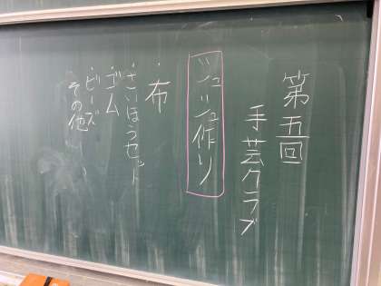 自分で作ったシュシュで髪を結えている児童もいて、充実した時間になっていました。