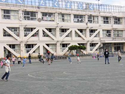 次のドロケイでは、逃げる子と追いかける子が校庭いっぱいに走り回りました。楽しい時間はあっという間に過ぎて、「もっとやりたい。」という声があちらこちらから聞こえました。6年生のやさしさと1年生のかわいらしさがあふれた活動となりました。
