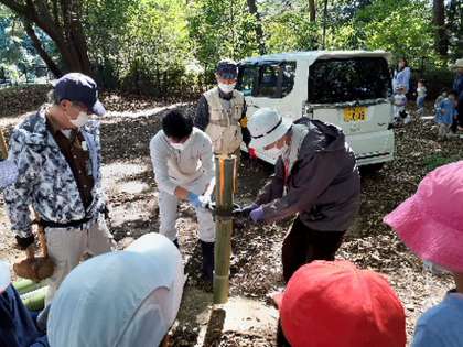4年生は世田谷トラスト、里山コア会議、東京農業大学の皆さんと里山での竹林保全活動に参加しました。竹は間伐をしないと、根がどんどん横に伸びたり、太陽光を遮ったりして、他の植物の育成を妨げてしまいます。そのために切った竹を廃棄するのではなく、枝打ちをして土が崩れるのを防ぐ道具や、日常に使える道具に加工したりして、廃棄するところなく再利用する昔からの生活の知恵を学びました。自然はそのまま放っておくものではなく、人が手を入れて保全することが必要であるとともに、自然と共に生きていく豊かさを感じとりました。