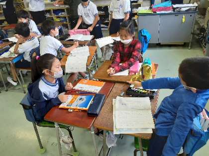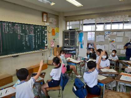 3年生の国語「ちいちゃんのかげおくり」では最後の場面を学習しました。ちいちゃんが生きていた頃から何十年もたった同じ場所について描かれた場面です。ちいちゃんが住んでいた家の跡には小さな公園ができていて、ちいちゃんと同じ年頃の子どもがきらきらした笑顔で遊んでいます。その場面を読み取り、作者が伝えたかったことを想像しました。「戦争の悲しさ」「家族や命の大切さ」「戦争は二度と繰り返してはいけないこと」それらが作者が最も伝えたかったことではないかと考えました。真剣に物語と向き合い、たくさんの大切な考えに出会う授業でした。