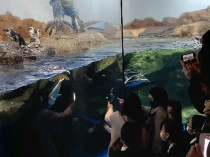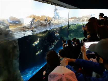 ペンギンのエサやりショーです。ペンギンは餌となる魚を必ず頭から丸飲みをするそうです。