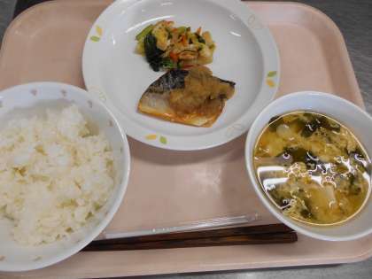 ごはん さばのおろしソース おひたし とき卵のみそ汁 牛乳