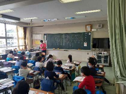 今日の2年生の道徳では、担任が入れ替わって授業をしました。「なわとび」というお話を使って、あきらめないで頑張ることの大切さを考えました。いつもとは違う教員の指導に子どもたちは新鮮な気持ちで向き合い、ワークシートに考えたことをたくさん書いたり、発表したりしていました。学年の教員と児童が距離を縮め、互いを知り合う機会にもなりました。