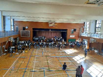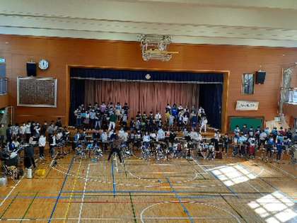 5年生の体育館練習の様子です。「United as one」共生社会の実現に向けて、総合的な学習の時間で学んだことを内容に盛り込みながら、子どもたちの願いや思いを発信します。練習に向かう姿も真剣そのものです。また、学年全員で一つの発表を創り上げることにも喜びを感じながら練習しているように映りました。