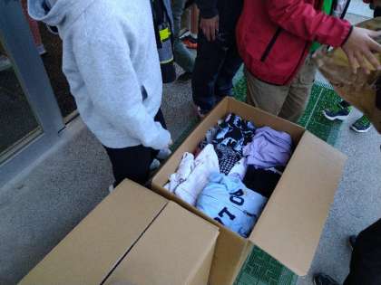 環境委員の子どもたちが「服のチカラプロジェクト」の活動をしています。持ってきてくれた古着を正門の昇降口で環境委員が集めています。「今日だけでダンボール3箱になった!」と報告してくれました。今回はボランティアの方を通してウクライナの方にも送る予定です。ご協力くださりありがとうございます。
