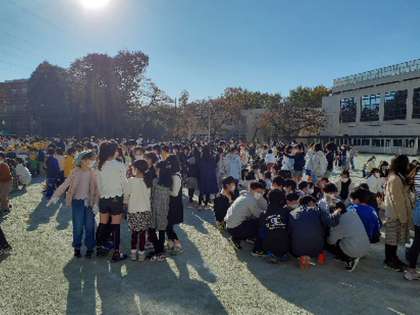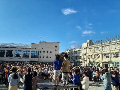 今朝は集会委員会による児童集会を行いました。みんなで「猛獣狩りに行こう~明正小に行こうよバージョン」をしました。最後のお題は「こうちょうせんせい」8音なので8人の仲間を作って集まりました。学年が入り交じって仲間をつくり、学年間の交流の時間となりました。