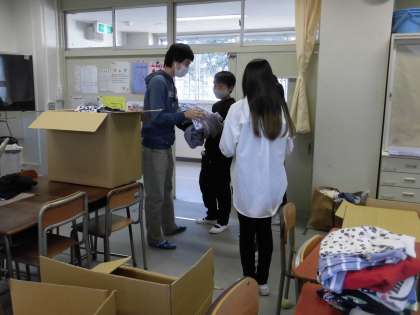 児童、保護者の皆さんのご協力を得て集められたたくさんの洋服の中から、400枚を超えるものを役立ててもらえることになりました。後日、卒業生の方には、高学年の児童にウクライナ支援についての講演をしていただく予定です。今、世界で起きていることを、そこで活動する方から直接聞くという貴重な時間となりそうです。