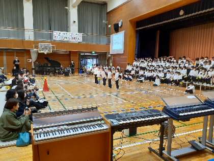 学習発表会保護者鑑賞日がスタートしました。トップバッターは1年生です。可愛らしさ全開です。