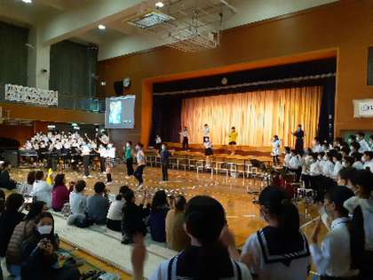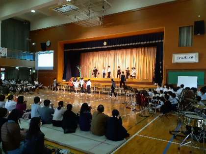 いよいよ6年生の発表が始まりました。奇跡の星、地球をみんなで愛し、大切にし、守っていこうと言うメッセージを劇と音楽を組み合わせたミュージカルにして発表します。素晴らしい完成度の発表は感動的です。