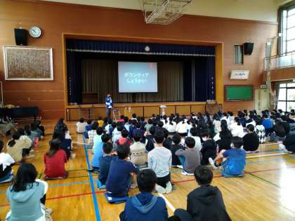 ゲストティーチャーにオンボラコミnet共同代表の方においでいただきました。2002年の日韓ワールドカップから東京2020にも関わっていたそうです。選手村の様子や活動内容をお話しいただいたり、ボランティアをするときには楽しむ気持ちが大切なことや特技が生かせることをお話しいただきました。子どもからは「やりがいは何ですか?」と質問があり、「やるからこそ人とのつながりができること」と教えてくださいました。総合的な学習の時間で取り組んいるキャリアや共生社会にもつながりそうです。