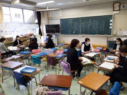 今日は本校を会場に砧の学び舎合同研修会を行いました。山野小、砧小、砧中、砧幼稚園、大蔵保育園の教員が明正小の子どもたちの学習の様子を参観しました。その後は各教科部会に分かれて、授業について協議し、互いの授業力向上に向けて意見交換をしました。3年ぶりに学び舎各校が集まり、一緒に研修をすることができました。