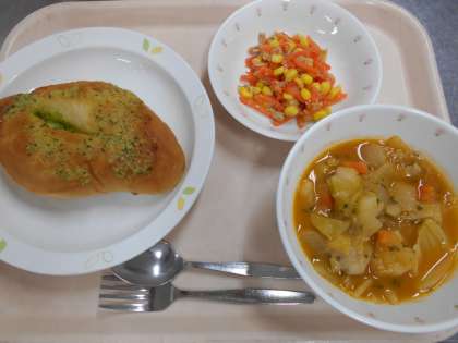 ガーリックフランス ボルシチ にんじんサラダ 牛乳