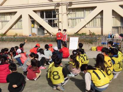 企画、司会進行は4年生が担当しました。ゲームのやり方の説明があった後、班に分かれて「キングダム」が始まりました。つかまらないように4年生が1年生を誘導してあげたり、1年生が一生懸命に4年生を追いかけたり、校庭いっぱいをみんな元気よく走り回りました。最後はお互いに感想を発表し合いました。「楽しかった。」「またやりたい。」「誘ってもらってうれしかった。」など、次回を楽しみにする気持ちが表れていました。