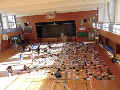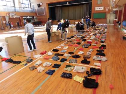 環境委員会は今日の活動で「服のチカラプロジェクト」で集められた洋服の集計作業を行いました。いくつものダンボールにつめられた服を体育館に並べます。列をきれいに整えないと正確に数が数えられません。声をかけ合いながらチームワークで、あっという間に全部を並び終えました。2枚重なっているところや列のずれを最終チェックしたあと、枚数を計算していよいよ発表です。先日ウクライナ支援でお渡しした407枚を含め「2036枚!」と聞いた子どもたちから「ああ、残念。」と声が上がりました。昨年よりも少ない数でしたが、教員は「すばらしいです。」と拍手を送りました。「委員みんなで1枚ずつ脱いで、加えちゃおうか?」と誰かが言うと「それいいね。」と笑い合う場面もありました。最後は、ユニクロさんにお渡しできるようにきれいにつめなおしました。