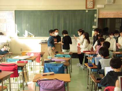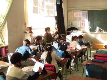 2年生は各クラスで、九九の検定が行われています。2学期も終わりに近づき、多くの児童が正確に暗記することができています。「九九パスポート」には検定に成功したというスタンプがたくさん押されています。「○×1、○×2…」と順番に唱える「のぼり」をすべてクリアすると、「くだり」「シャッフル」に挑戦します。学年が進み、わり算や複雑な計算を解くときにも九九は基本となります。どの順番でもどの段でも自由自在に答えられるように、練習をくり返し、いっそうの習熟をめざします。