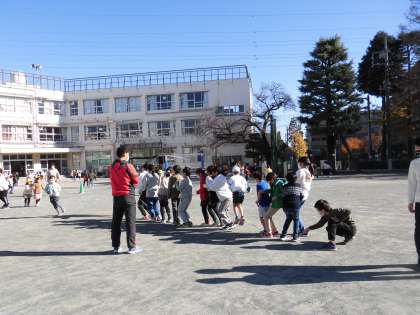 今日の中休みは、6年生が企画をして下級生と一緒に遊びました。校庭では、鬼ごっこと長なわとびが行われました。鬼ごっこで教員も参加すると、いっそうの盛り上がりを見せました。長なわとびでは、大勢が一緒にうまくとべるかに挑戦していました。回し手も息を合わせ、「せーの。」とかけ声も合わせます。何度目かに成功するとみんなで拍手をして喜んでいました。寒さに負けず元気いっぱい体を動かした中休みでした。