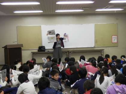 今日の4年生は新聞についての学習をしました。ゲストティチャーとして読売新聞の記者の方に来ていただきました。子ども新聞ときょうの朝刊をもとに、新聞の読み方などを教えていただきました。また、取材用のメモもいただき、記者になった気分でした。