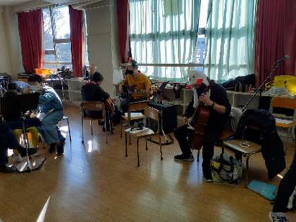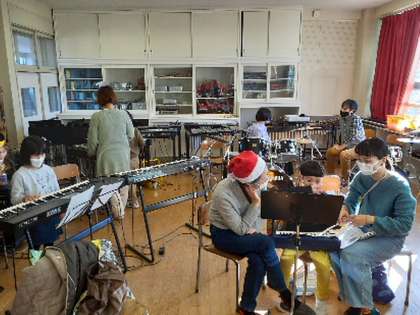 明正ミュージッククラブバンドは、自己紹介の後、各パートで練習をしました。最後に全員で、ジングルベルを演奏し、素敵なクリスマスイブになりました!