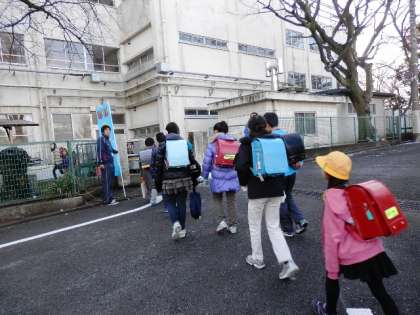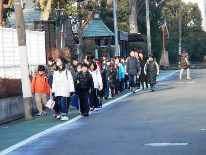 昨日の雪のせいか、とても寒い朝を迎えました。お茶坂をはじめとして通学路の雪は、ほとんどなくなっていました。ところどころ、路面が凍結しているところがありましたが、どの班も高学年が気を配りながら声かけをしてくれていました。
