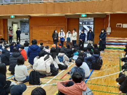 実行委員を中心に、到着式が行われました。ケガもなく。無事に帰ってくることができました。